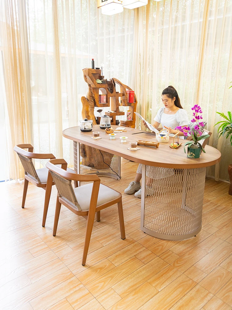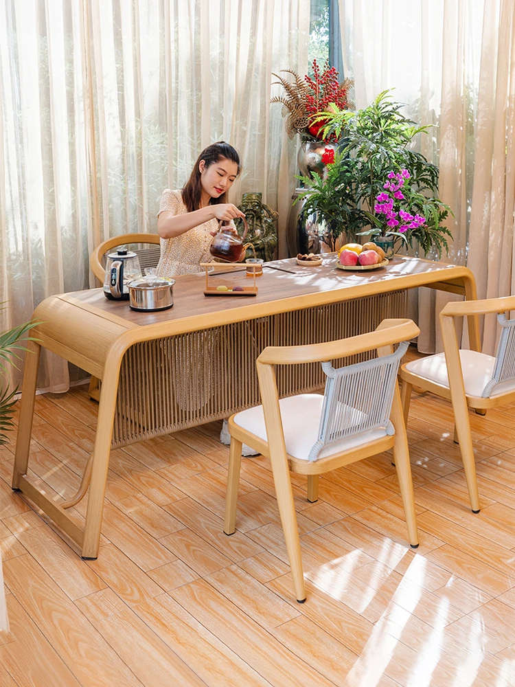 紫葉の無垢材を使用した創造的な茶卓と椅子のセット、流れるようなデザインで大空間にもぴったり。新中式スタイルの香樟木製茶台で、贅沢なティータイムをお楽しみください。