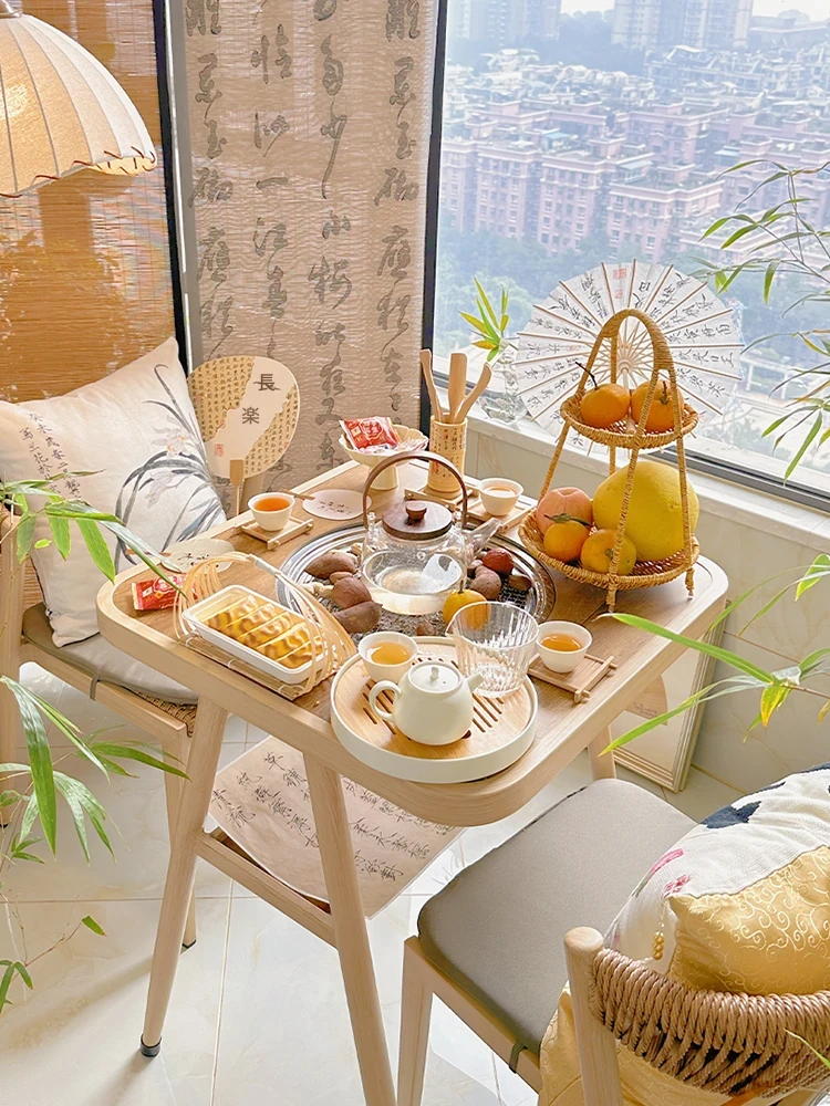 紫葉バルコニー用ティーテーブルセット|多機能茶卓&ダイニングテーブル|リビング・家庭用小型ティーテーブル|アウトドアにも最適な新中式デザイン