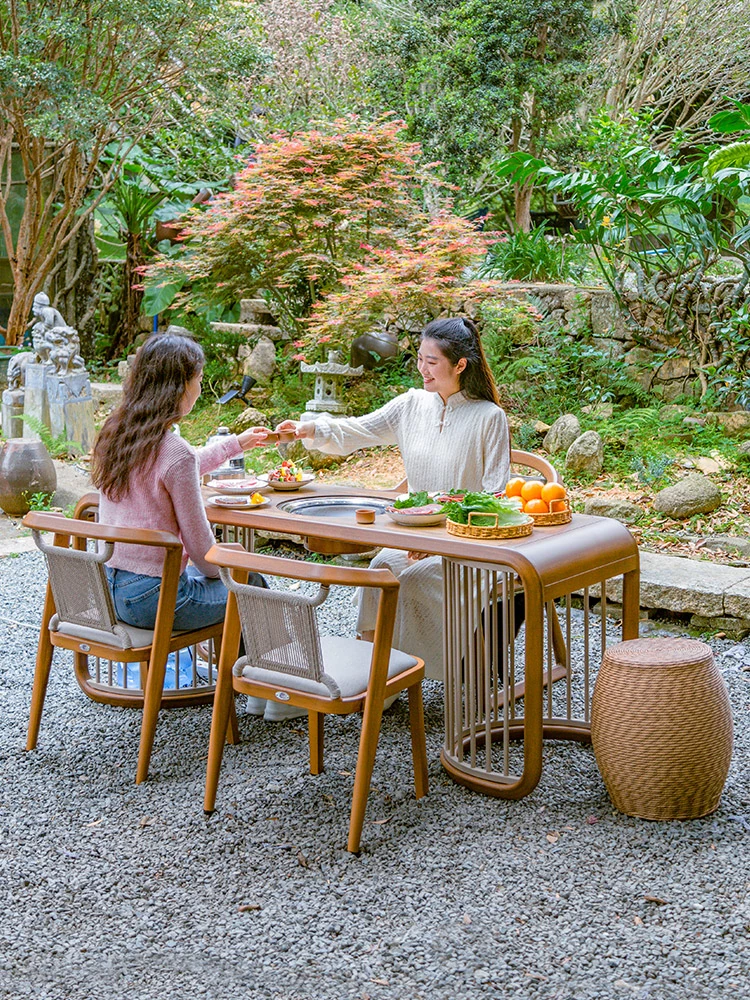 紫葉新中式囲炉裏茶卓 - 屋外でのお茶やバーベキューに最適なスタイリッシュな庭用テーブルセット。リラックスしたひとときを提供する、陽台でのティータイムを楽しもう!