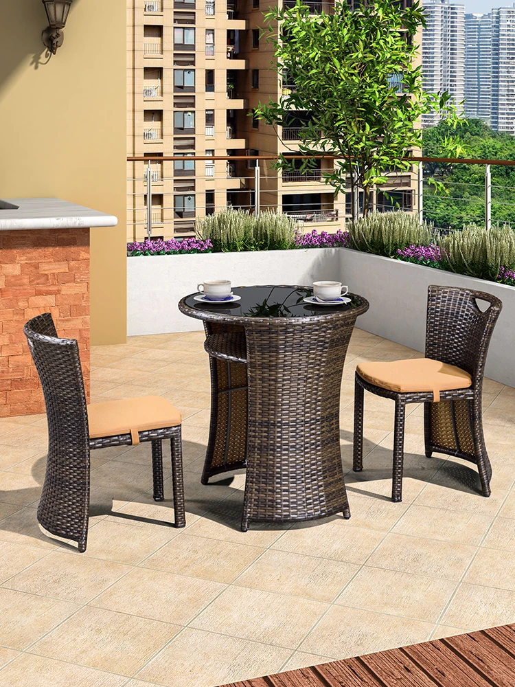 紫葉のバルコニー用ティーテーブルセット|家庭用小型茶卓&椅子3点セット|アウトドアリラックスに最適なラタンチェア付き小茶テーブル!おしゃれで機能的なデザインで、あなたの屋外空間を華やかに演出します。