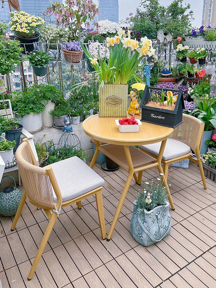 紫葉の雨棠茶卓セット - モダンでシンプルなデザイン、バルコニーやリビングにぴったり!小型スペースに最適な茶テーブルと椅子のコンビネーションで、くつろぎのひとときを演出します。