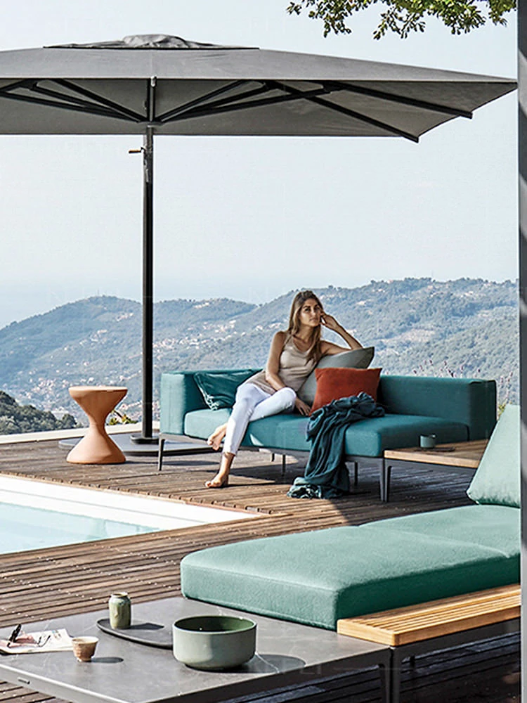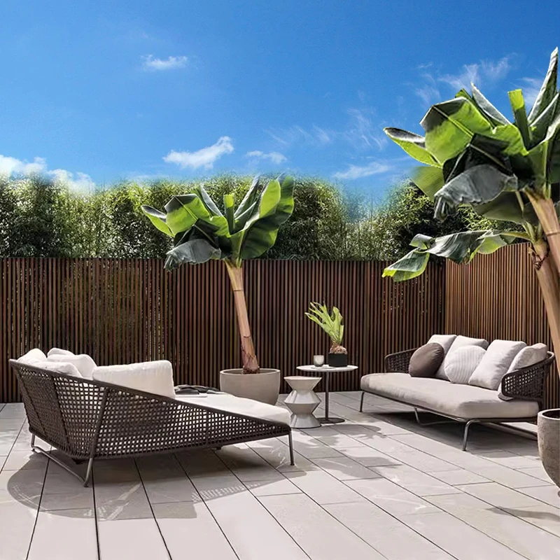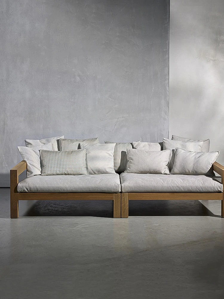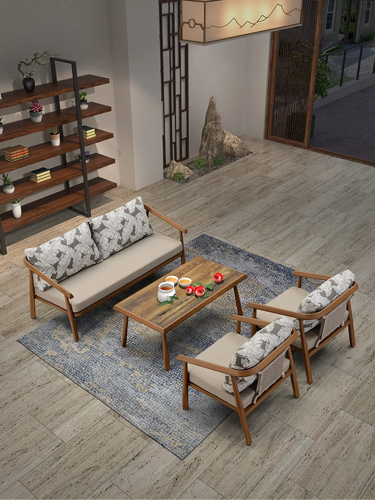 紫葉のテラスソファー|新中式デザインの現代的なユーカリ無垢材製|防水・紫外線対策済み|庭や別荘に最適なアウトドアソファー!快適なひとときをお届けします。
