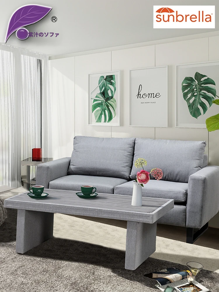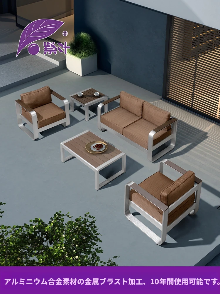 紫葉アルミ合金製北欧スタイルアウトドアソファセット - テーブル付き、別荘や庭に最適!防水・UVカットで長持ち、快適なリラックス空間を提供します。