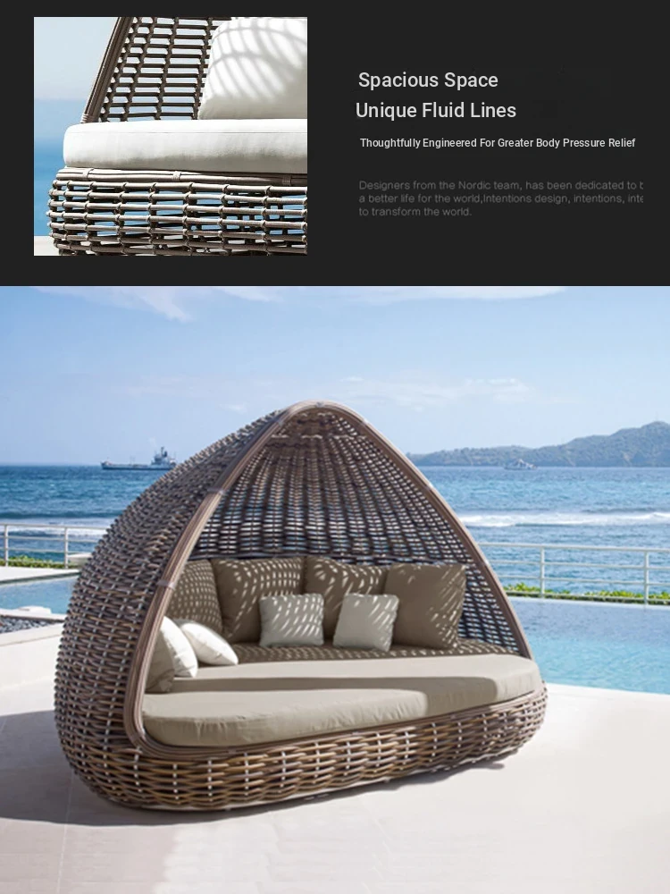 Purple Leaf Outdoor Wicker Lounge Bed - Versatile Sofa Bed for Patio, Large Multi-Functional Modern Design, Perfect for Relaxation and Outdoor Gatherings