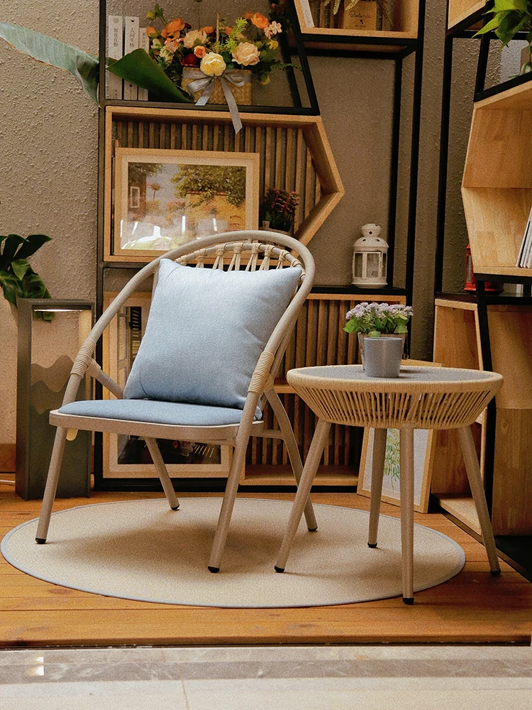 Purple Leaf Balcony Lounge Chair - Minimalist Nordic Single Sofa with Rattan Design, Perfect for Living Room Tea Table Set - Stylish & Comfortable!