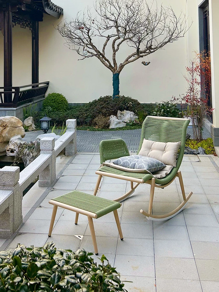 Purple Leaf Outdoor Sofa Balcony Lounge Chair - Stylish Wicker Rocking Chair for Patio and Living Room - Designer Rattan Furniture Set for Ultimate Relaxation