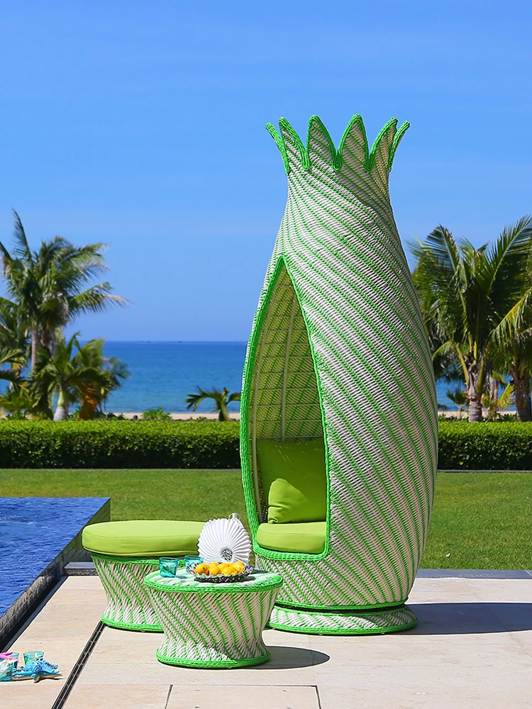 紫葉のバードネストソファー|ホテル・ガーデン用丸型ベッド|防水・UVカット|美容院・テラスに最適なラタン製バードネストソファベッド